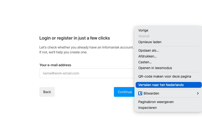 of na het gebruik van de vertaal functie van Chrome 1 : - Inloggen of registreren in slechts een paar klikken