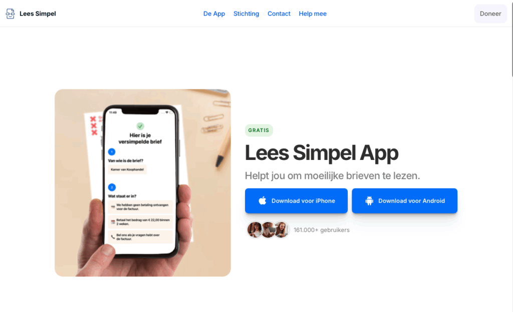 Open de app, maak een foto en je krijgt een eenvoudigere of zelf vertaalde tekst.